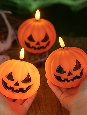 1 pieza 9,5 * 7,6 cm calabaza sonriente de Halloween LED vela electrónica luz interior al aire libre restaurante dormitorio fiesta festival ambiente luz decorativa adorno luz pequeña luz de noche