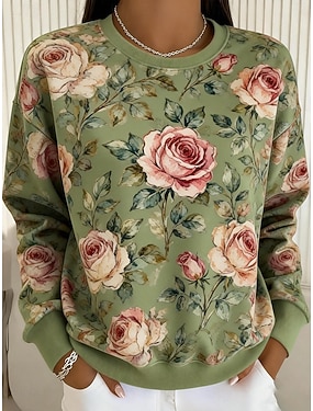 Mujer Sudadera Floral Casual Manga Larga Cuello Barco Tops regulares Casual Calle Uso Diario Rosa Verde Trébol Primavera Otoño Invierno