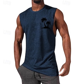 Hombre Camiseta sin mangas Top Camisetas Interiores Camisa sin mangas Sin Mangas Cuello Barco Verano Árbol de coco Moda Design Básico Clásico Vacaciones Calle Noche Azul Piscina Negro Verde Claro