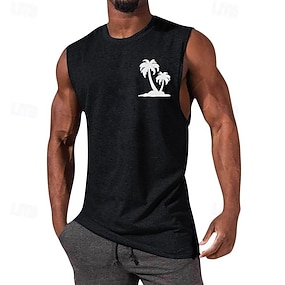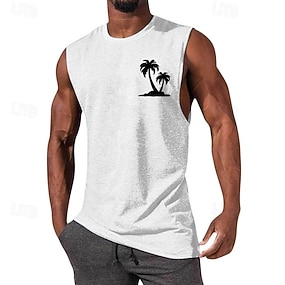 Hombre Camiseta sin mangas Top Camisetas Interiores Camisa sin mangas Sin Mangas Cuello Barco Verano Árbol de coco Moda Design Básico Estampado Vacaciones Calle Noche Negro Blanco Azul Claro Camiseta