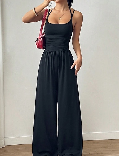 Mujer Normal Mono Activo Color sólido Sin Mangas Perneras anchas Cuello halter Espalda al Aire Diario Vacaciones Ajuste regular Negro Vino Verano