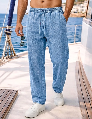 Hombre Pantalones casuales 100% Algodón Pantalones anchos Pantalones lavados con ácido Correa Cintura elástica Pierna recta Plano Comodidad Cómodo Longitud total Diario Exterior Vacaciones Vacaciones