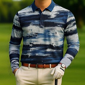 Hombre Geométrico Golf Polo Camisetas polo deportivas Manga Larga Camisas de polo Camisas con cuello Ropa deportiva Ropa Deportiva Ropa Cotidiana Impresión 3D Primavera Otoño Negro Azul Piscina Morado