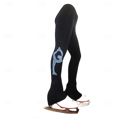 Pantalones de patinaje artístico para mujer y niña, elásticos, negros, para entrenamiento, competición, térmicos, cálidos, con cristales y diamantes de imitación, para patinaje sobre hielo.