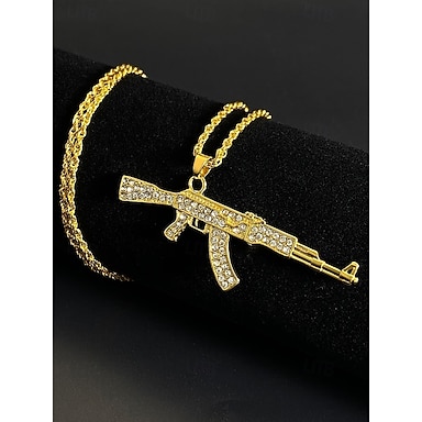 Collar con colgante de aleación para hombre con diseño de pistola de diamantes de imitación, cadena de joyería brillante de hip hop, accesorio de moda para fiestas, conciertos y ropa urbana.