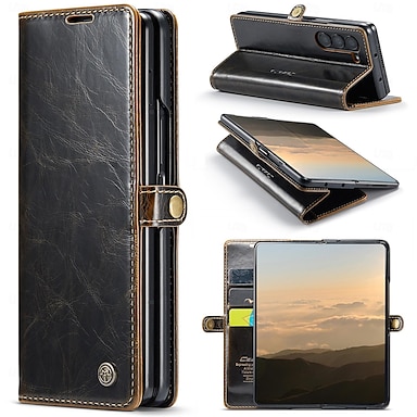 teléfono Funda Para Samsung galaxia Plegado en Z 7 Plegado en Z 6 Z Fold 5 Z Fold 4 Gire la tapa con Soporte Magnética Ranura para tarjetas Retro TPU Cuero de PU