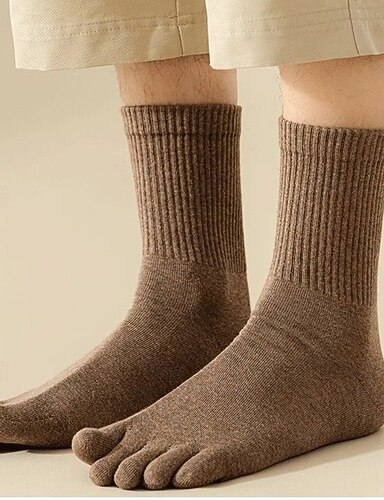 Hombre 5 pares Paquetes múltiples Calcetín Calcetines con Dedo Calcetines para correr Calcetines informales Negro Blanco Color Plano Vacaciones Deporte Diario Básico Medio Primavera Otoño Moda Casual