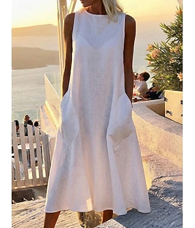 Mujer Vestido maxi Lino de algodón sintético Vestido de cambio Vestido de verano Vestido blanco Ropa de calle Casual Vacaciones Holgado Sin Mangas Cuello Barco Negro Blanco Amarillo Gris Verano