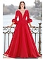 Corte A Hasta el Suelo Vestidos de noche Corte Cenicienta Vestimenta formal Elegante Sedoso Manga Larga Escote en Pico Formal Boda Satén con Lazo(s) Plisado