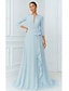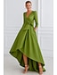 Corte A Hasta el Suelo Vestidos de noche Corte Cenicienta Vestimenta formal Elegante Largura Asimétrica Madre Manga 3/4 Escote en Pico Formal Invitado a la boda Satén con Lazo(s)