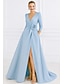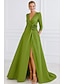 Corte A Hasta el Suelo Vestidos de noche Corte Cenicienta Vestimenta formal Elegante Split High Manga Larga Escote de ilusión Formal Boda Bolsillo Satén con Fruncido