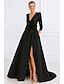 Corte A Asimétrica Vestidos de noche Corte Cenicienta Vestimenta formal Elegante Sedoso Manga Larga Escote en Pico Formal Bolsillo Satén con Bolsillo