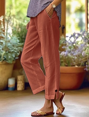 Mujer Pantalones de lino y algodón Pantalones Pantalones casuales Pantalones de verano Vacaciones Moda Ropa de calle Longitud total Alta cintura Plano Bolsillo Cintura elástica Transpirabilidad Cómodo