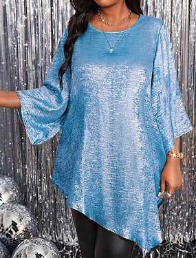 Navidad Mujer Blusa Lentejuelas Color sólido Elegante Básico Casual Manga Larga Escote en Pico Tops regulares Diario Plata Negro Rojo Verde Trébol Primavera Otoño Invierno