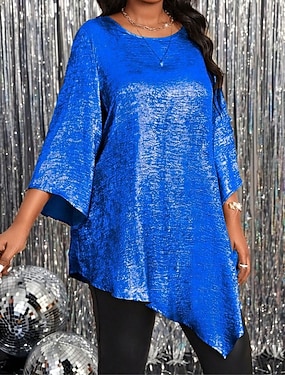 Mujer Blusa Remera de algodón Plano Vintage Elegante Manga 3/4 Cuello Barco Tops regulares Diario Festivos Noche Azul Piscina Amarillo Rosa Gris Verano Primavera