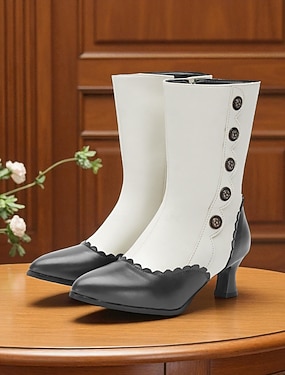 Botas victorianas blancas y negras con botones para mujer, ribete festoneado y tacón de bloque: botines estilo gótico eduardiano de los años 20 para mujer, ideales para cosplay y steampunk. &trajes