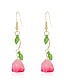 Pendientes de fruta con forma de cereza de resina rosa y hojas verdes para mujer.