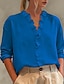 Mujer Tops de verano Blusa Tops elegantes Color sólido Plano Elegante Vintage damas Manga 3/4 Cuello Camisero Tops regulares Diario Trabajo Noche Frunce Retazos Bolsillo Azul Piscina Amarillo Morado