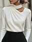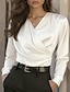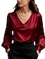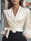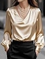 Mujer Elegant Top de satén Blusa Tops elegantes Color sólido Plano Elegante damas Clásico Manga Larga Escote en Pico Tops regulares Diario Trabajo Festivos Frunce Retazos Con Cuentas Negro Blanco Gris