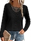 Mujer Blusa Color sólido Elegante Casual Manga Larga Cuello Barco Tops regulares Diario Encaje Retazos Azul Piscina Negro Rosa Naranja Albaricoque Primavera Otoño