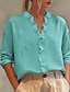 Mujer Blusa Color sólido Vintage Casual Manga Larga Cuello Camisero Tops regulares Diario Botones Azul Piscina Negro Vino Morado Verde Trébol Primavera Otoño Invierno