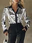 Mujer Blusa Color sólido Elegante Casual Manga Larga Escote en Pico Tops regulares Diario Lentejuelas Blanco Champaña Azul Piscina Dorado Primavera Otoño Invierno