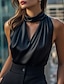 Mujer Camisa Elegant Top de satén Blusa Plano Elegante Sin Mangas Cuello halter Tops regulares Diario Trabajo Festivos Frunce Negro Verano Primavera Otoño
