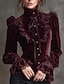 Mujer Terciopelo Blusa Tops elegantes Plano Elegante Vintage damas Manga Larga Cuello Camisero Tops largos Diario Trabajo Festivos Frunce Retazos Botones Granate Púrpula Claro Morado Marrón Verde