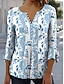 Mujer Blusa Floral Graphic Elegante Manga 3/4 Escote Redondo Tops regulares Diario Noche Volante Botones Azul Piscina Morado Verde Trébol Caqui Verano Primavera