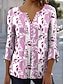 Camisa de mujer blusa de botones ombre floral gráfica bohemia vintage diaria manga de 3/4 cuello en V tops regulares diaria vacaciones ropa de playa impresión morado verde rosa verano primavera otoño