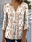 Blusa de mujer con escote en V gráfica floral paisley bohemia vintage diaria de manga larga de manga 3/4 con mangas anchas blusas regulares ropa diaria de vacaciones estampado rosa azul beige gris