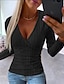 Mujer Camiseta Camiseta superior Color sólido Elegante Moda Manga Larga Escote en Pico Tops regulares Diario Fin de semana Botones Azul Piscina Negro Blanco Amarillo Rosa Primavera Otoño
