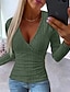 Mujer Camiseta Color sólido Plano Elegante Vintage Moda Manga Larga Escote en Pico Tops regulares Diario Noche Fin de semana Retazos Sayo Botones Negro Blanco Vino Verde Trébol Caqui Otoño Invierno