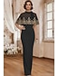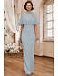 Funda Columna Hasta el Suelo Vestido formal Vestido de noche Vestido de capa Vestido de gala con capa Elegante Manga Larga Cuello Barco Boda Formal Capas con Detalles con Perlas Chal