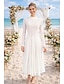Dos Piezas Corte A Hasta el Tobillo Vestido Invitada Boda Vestido blanco pequeño Elegante Diario Vestidos Blancos Manga Larga Cuello Barco Boda con Encaje