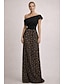 Funda Columna Hasta el Suelo Bordado con cuentas Vestido formal Vestido de madre de la novia Vestidos de noche Vestimenta formal Elegante Estilo de Celebridad Floral Manga Corta Escote Cuadrado