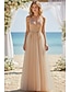 Corte A Hasta el Suelo Vestido de fiesta de graduación Vestido Invitada Boda Vestidos de invitada de boda Elegante Fiesta Reluciente Sin Mangas Correa de espagueti Fiesta de baile Boda Tul con
