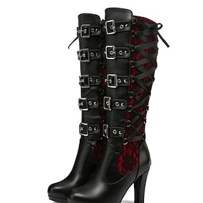 Botas victorianas hasta la rodilla con encaje rojo para mujer, botines de tacón góticos vintage de los años 20 para fiestas de El Gran Gatsby, cosplay y eventos formales.