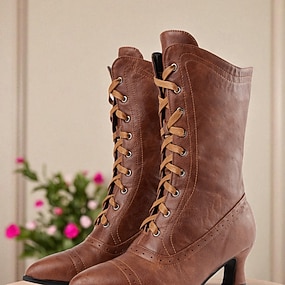 Botas victorianas con cordones y tacón bajo de piel sintética marrón para mujer: clásicas y elegantes para cosplay, fiestas de disfraces y atuendos de inspiración vintage