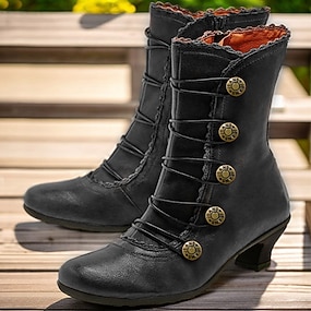 Botines vintage con botones para mujer: botas de tacón corto de cuero retro para cosplay, fiestas y uso diario