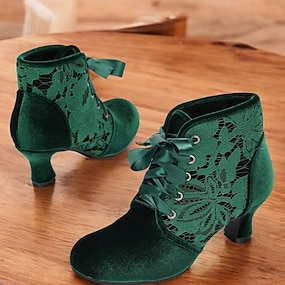 Botines de terciopelo verde victoriano de inspiración vintage para mujer con paneles de encaje | Cómodos y elegantes para cosplay y ocasiones especiales