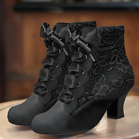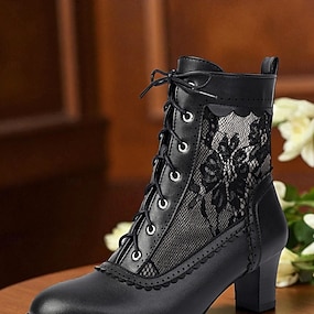 Botines de mujer estilo victoriano con diseño de encaje y detalles de piel sintética: calzado vintage con cordones para ocasiones informales y de disfraces