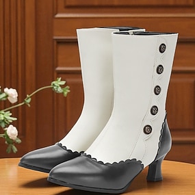 Botas victorianas vintage con cordones para mujer: botas de piel sintética de dos tonos hasta media pantorrilla con tacón grueso, perfectas para cosplay, festivales y ferias renacentistas
