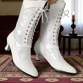 Botas blancas de encaje vintage con tacón para mujer – elegante estilo victoriano de los años 20, perfectas para eventos formales, bodas y amantes de la moda vintage.