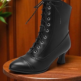 Botines de piel sintética con cordones estilo victoriano para mujer: calzado elegante para eventos de temática vintage y uso diario