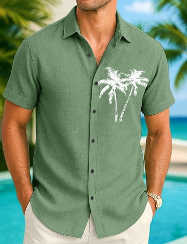 Hombre Camisa Camisa de lino Camisa de verano Camisa con botones Camisa casual Camisa de playa Plano Vacaciones Casual Negro Blanco Verde Claro Rosa Manga Corta Cuello Verano Ropa