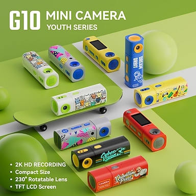 Minicámara de acción G10 para niños &Grabadora de vídeo HD 2K para adolescentes con lente giratoria de 230°. &Pantalla LCD TFT, cámara portátil de bolsillo para vlogging, linda cámara digital compacta