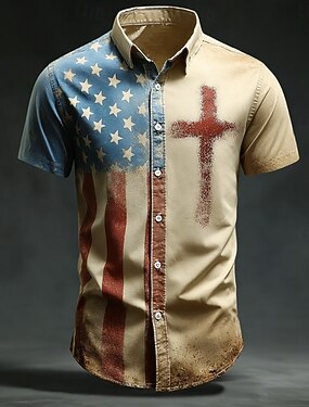 Hombre 4 de julio, 250 aniversario de Estados Unidos Cruz Bandera estadounidense Camisa Camisa de verano Abotonar la camisa Manga Corta Patriótico Exterior Ropa de calle Festivos Verano Primavera