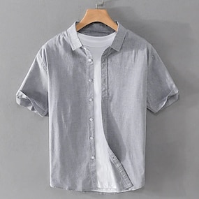 Hombre Camisa de lino Camisa de verano Ropa de playa Abotonar la camisa Color sólido Vacaciones Maldición Blanco Azul Piscina Gris Manga Corta Cuello Vuelto Verano Primavera Ropa
