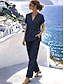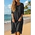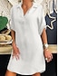 Mujer Mini vestido Lino de algodón sintético Vestido de Camisa Vestidos de lino y algodón Vestido de invierno Casual Vacaciones Ajuste regular Plano Manga Corta Escote en Pico Azul Piscina Negro